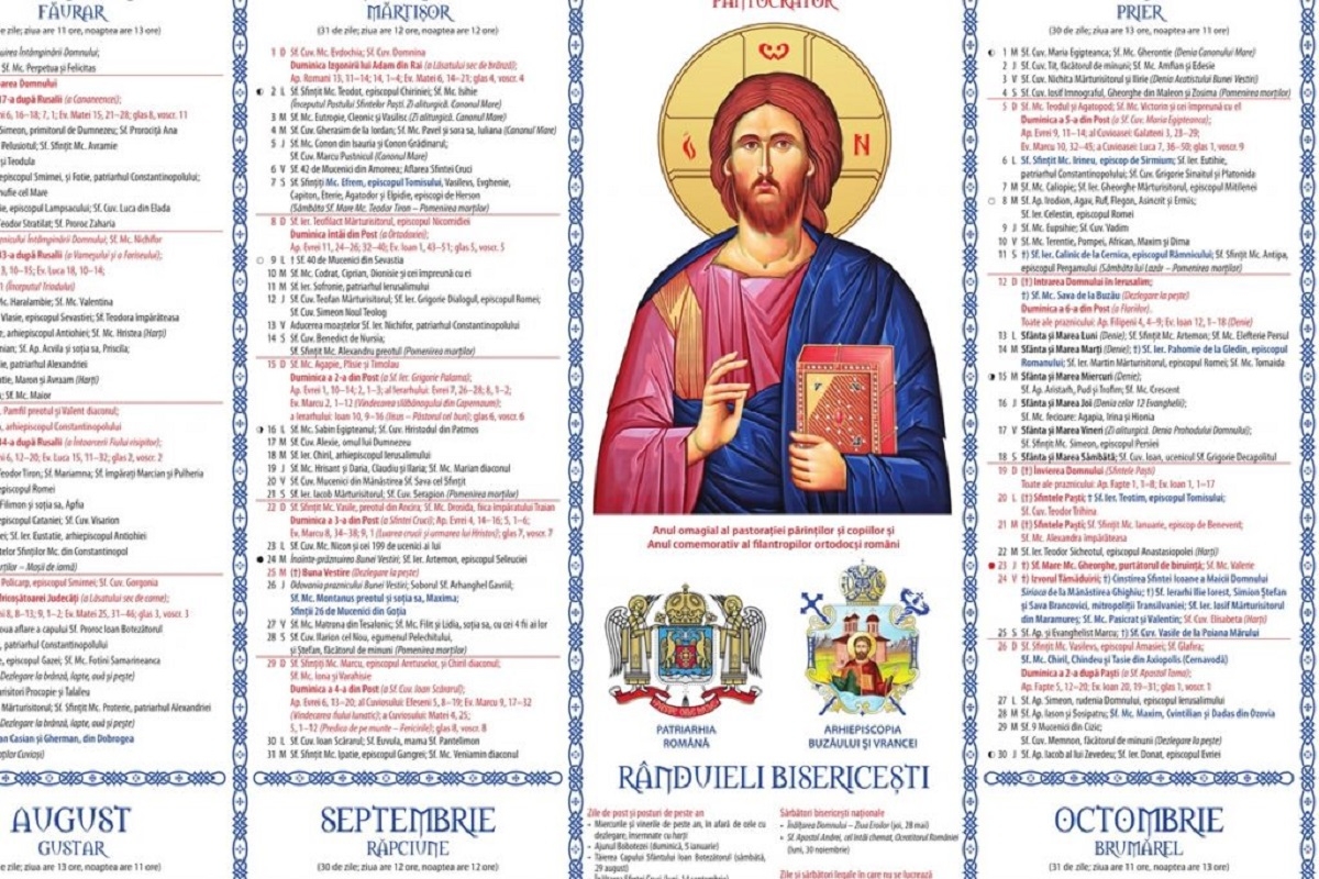 Download and Print 16 August 2025 Calendar Ortodox Listed below