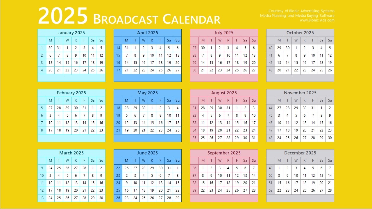 Download and Print 2025 Broadcast Calendar Printable Listed below