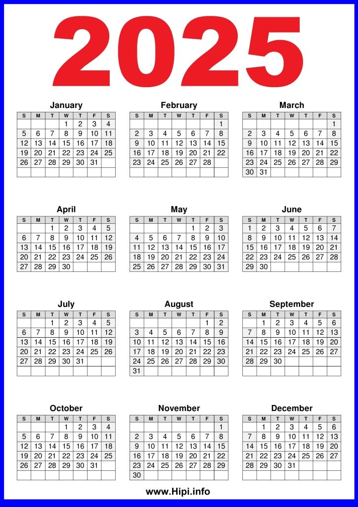 Download and Print 2025 Calendar Free Printable Vertical Listed below