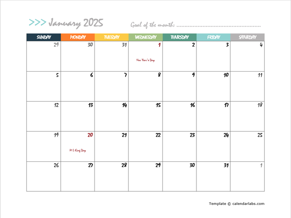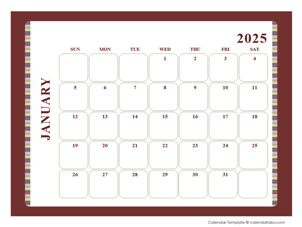 Download and Print 2025 Calendar Large Boxes Listed below
