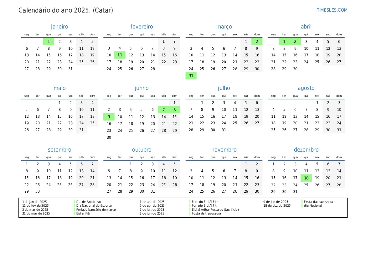 Download and Print 2025 Calendar Printable Qatar Listed below