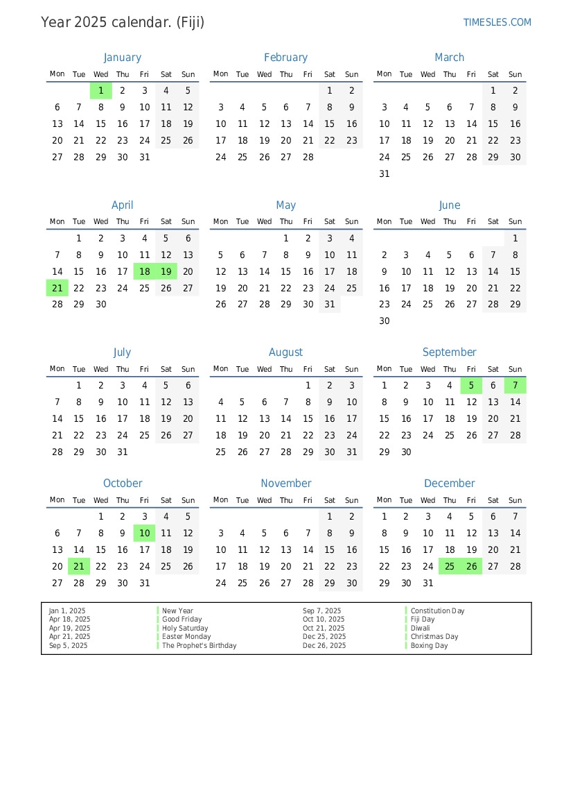 Download and Print 2025 Calendar With Holidays Fiji Listed below
