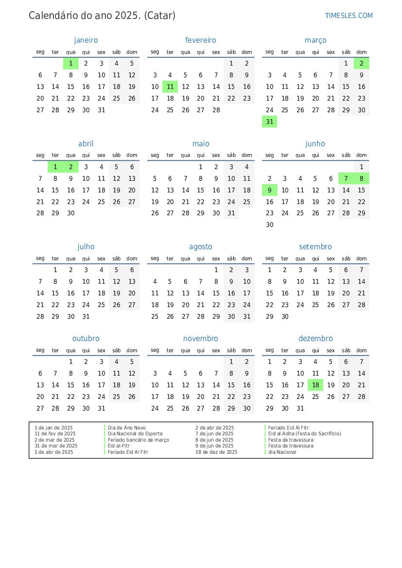 Download and Print 2025 Calendar With Holidays Qatar Listed below