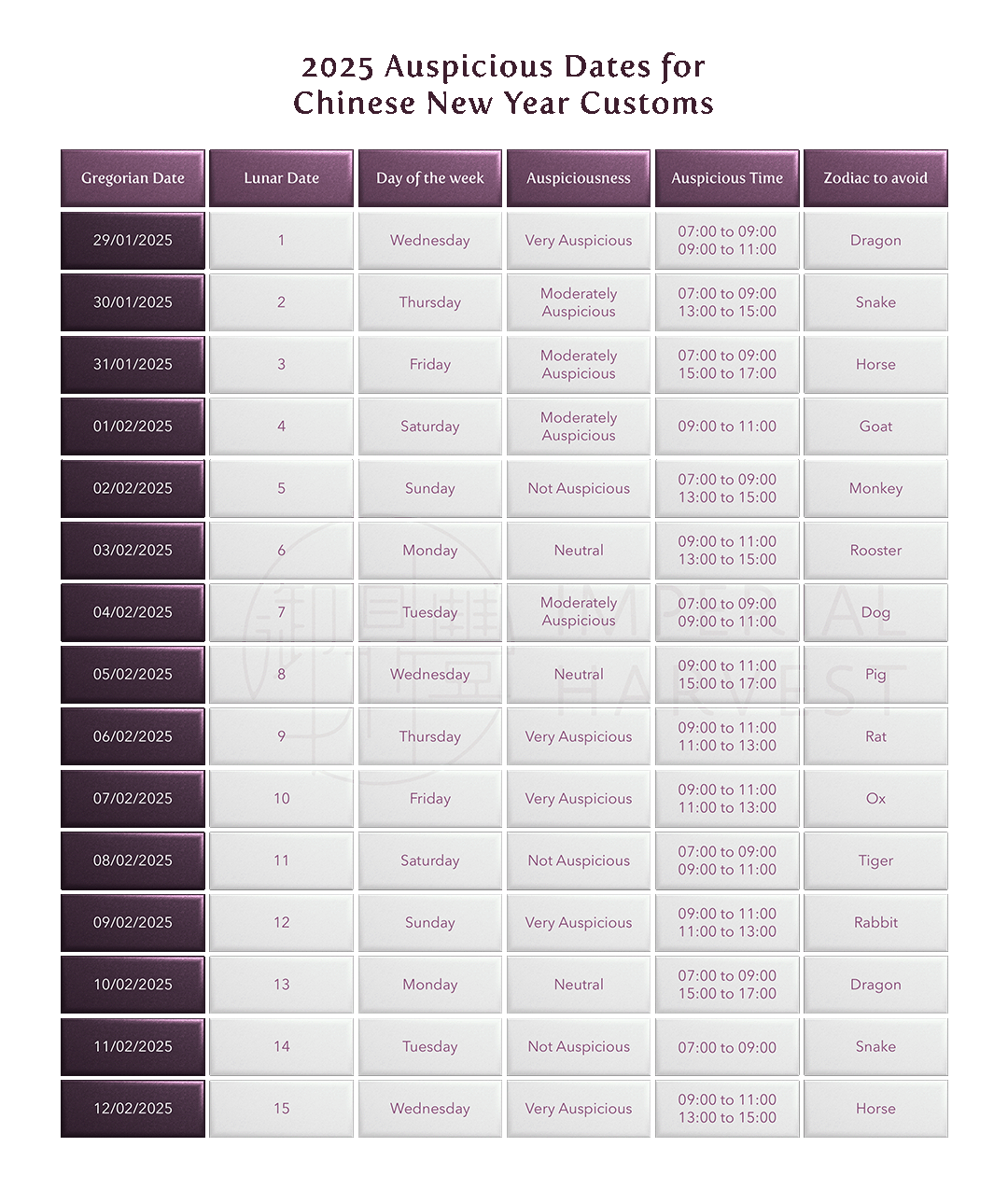 Download and Print 2025 Chinese New Year Date Calendar Listed below