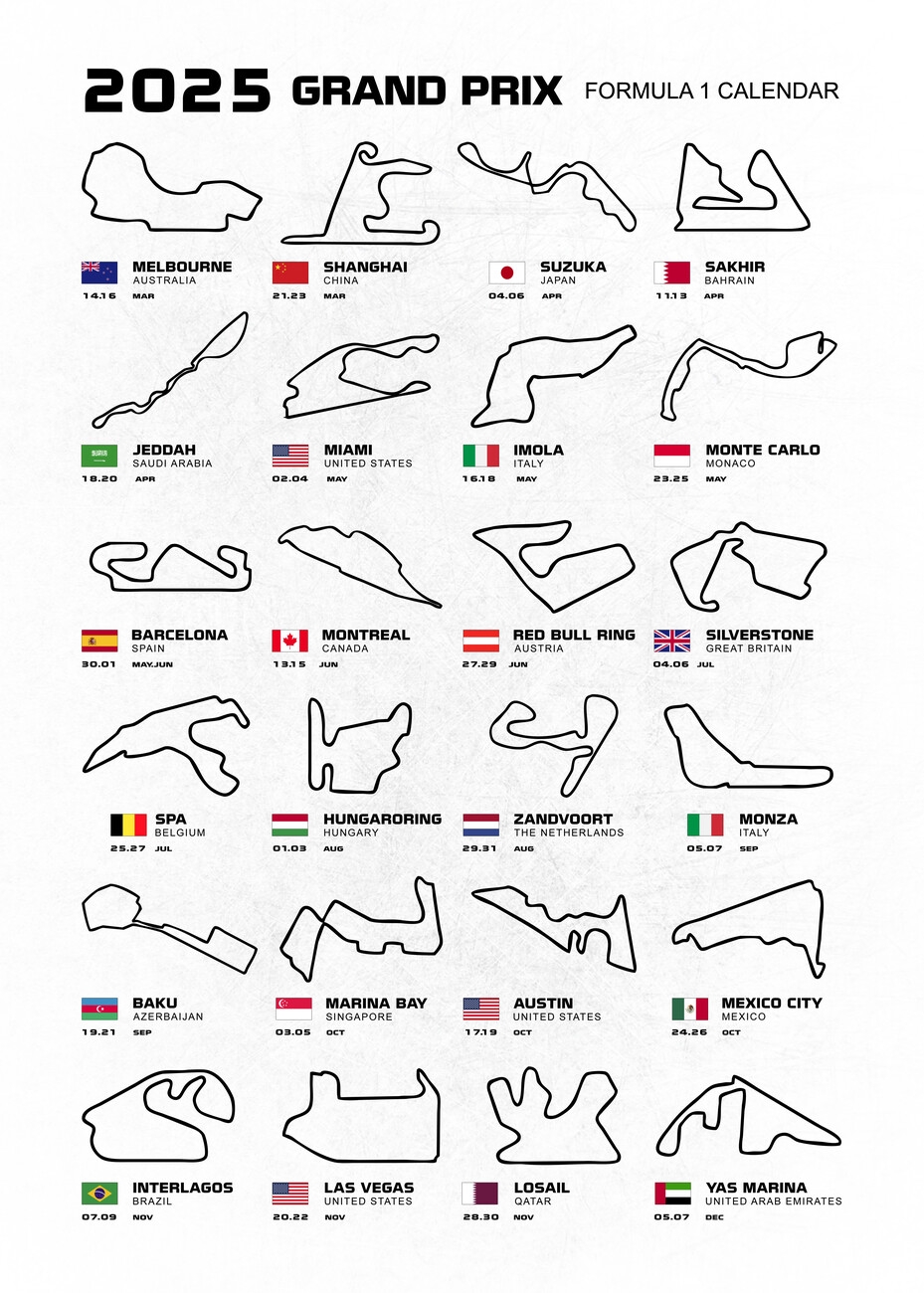 Download and Print 2025 F1 Calendar Download Listed below