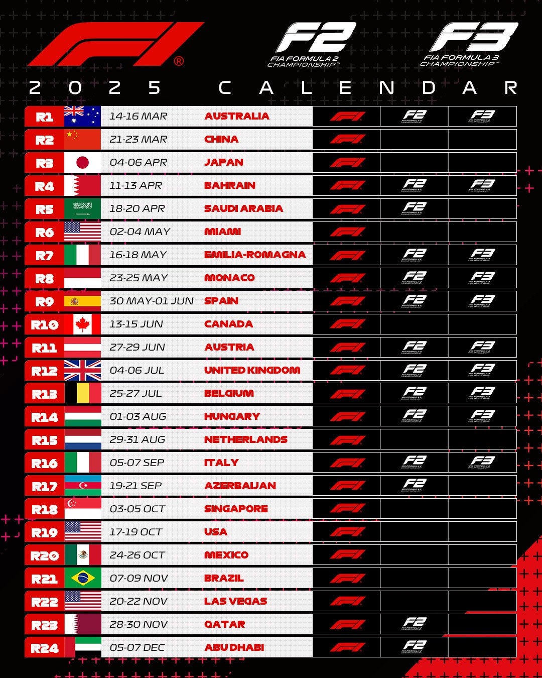 Download and Print 2025 F1 Calendar Results Listed below