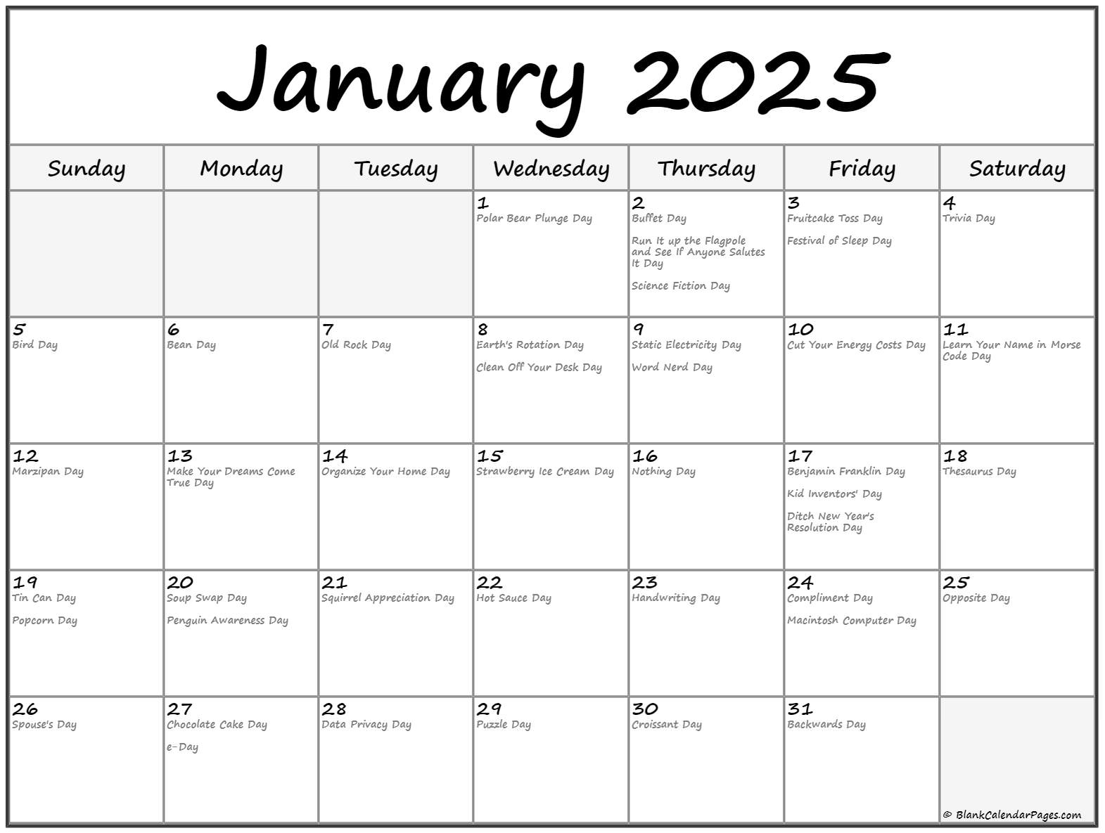 Download and Print 2025 Fun Calendar Days Listed below