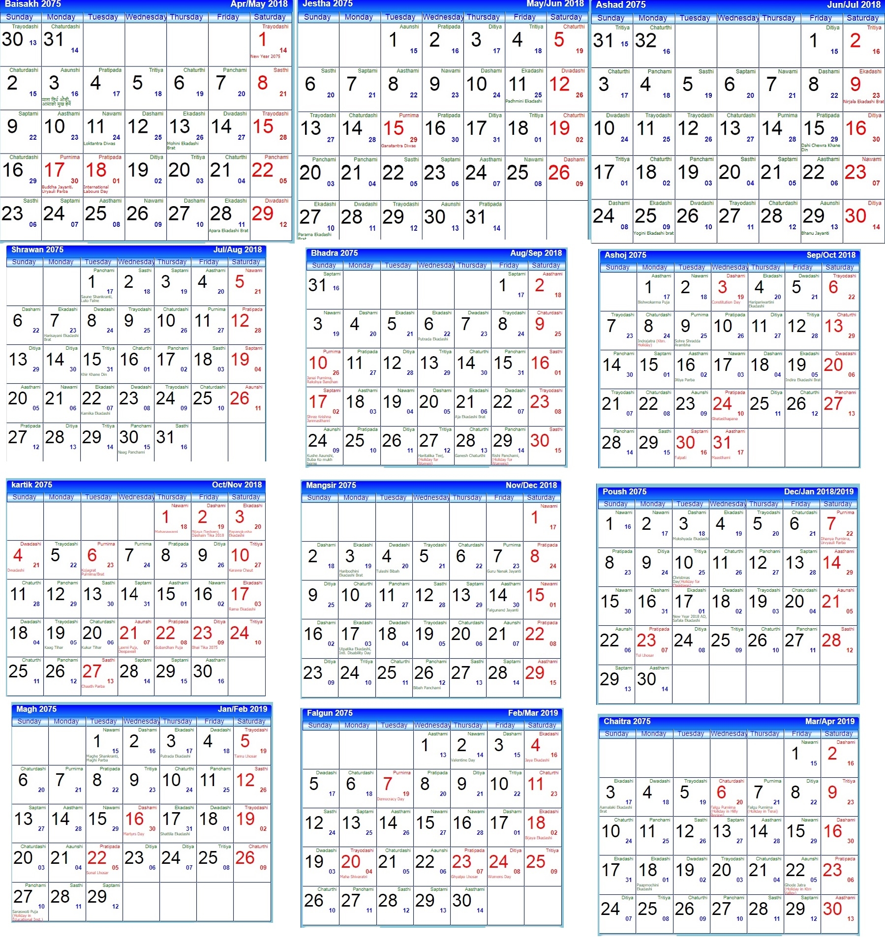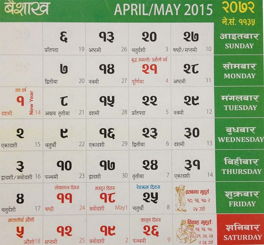 Download and Print 2025 Nepali Calendar In English With Tithi Listed below