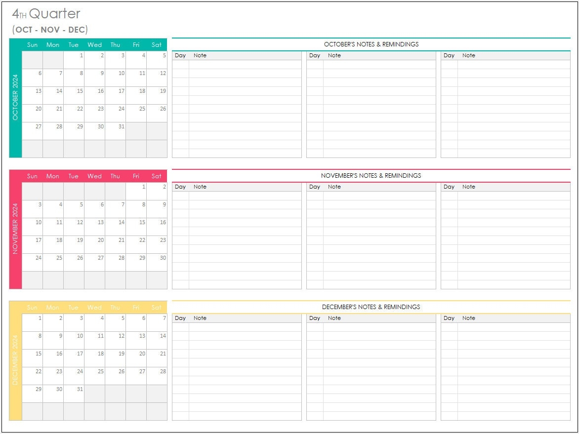 Download and Print 2025 Quarterly Calendar Excel Listed below