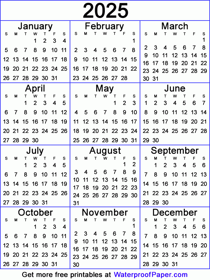 Download and Print 2025 Yearly Calendar Printable One Page Listed below