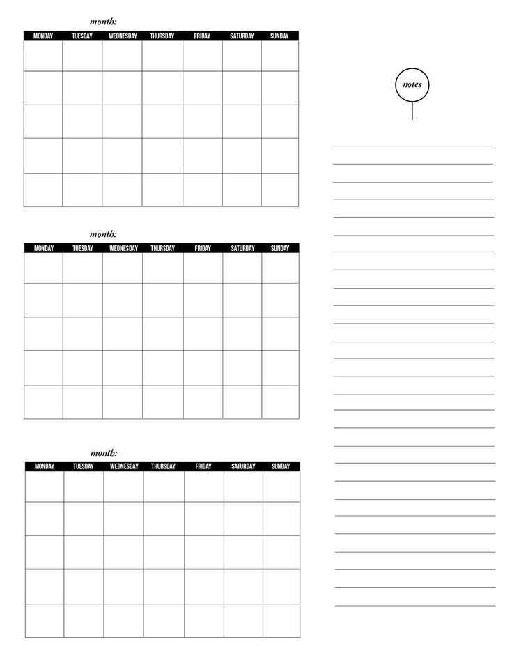 3 Month Blank Calendar Page Printable