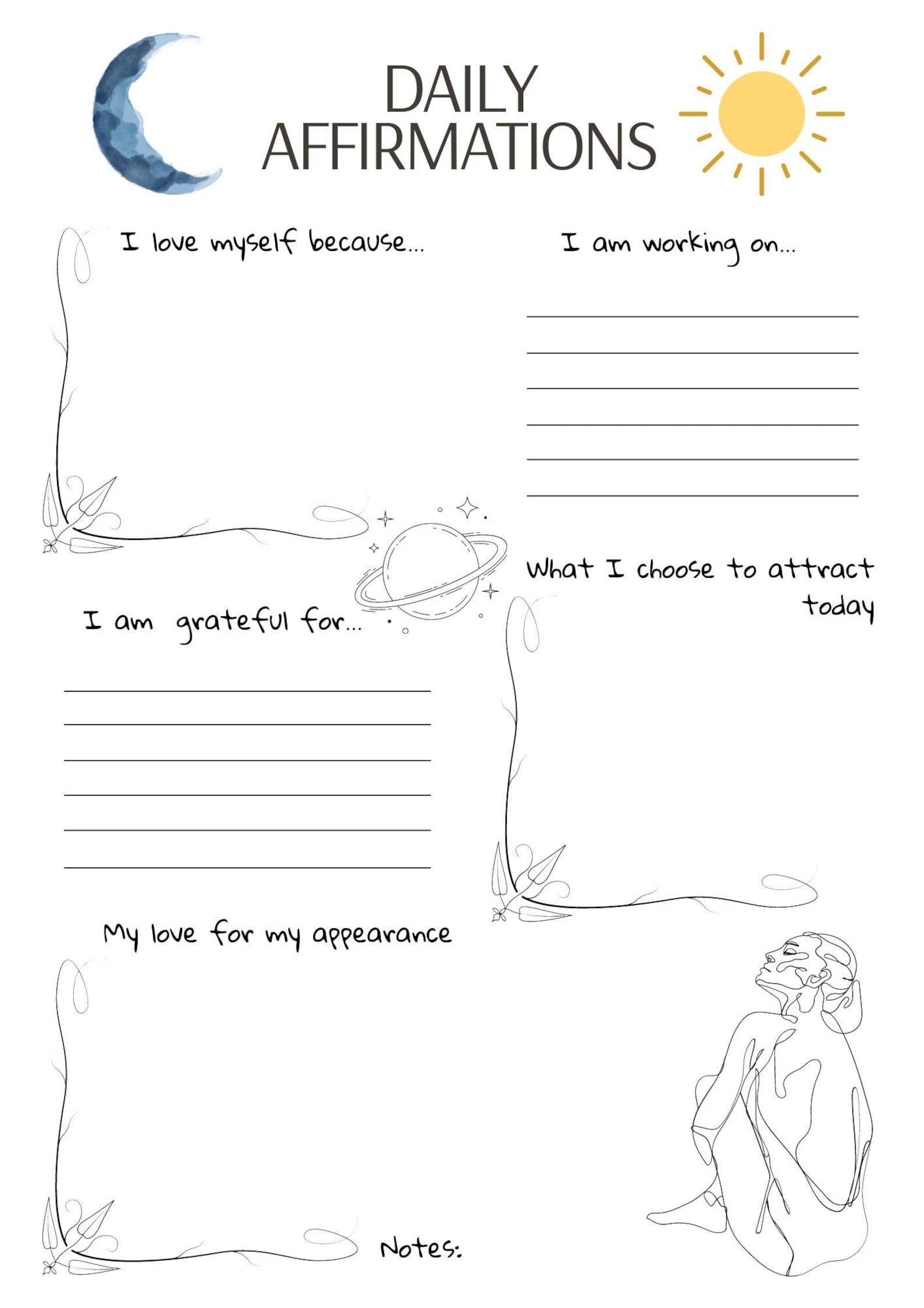 Once you have filled in the blanks, take a few moments each day to read your affirmations out loud. Visualize yourself living out these affirmations and feel the positive energy they bring. With consistent practice, you’ll start to notice a shift in your mindset and attitude.