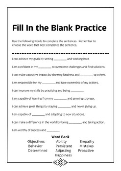 Download and Print Affirmatins Fill In The Blank Printable Listed below