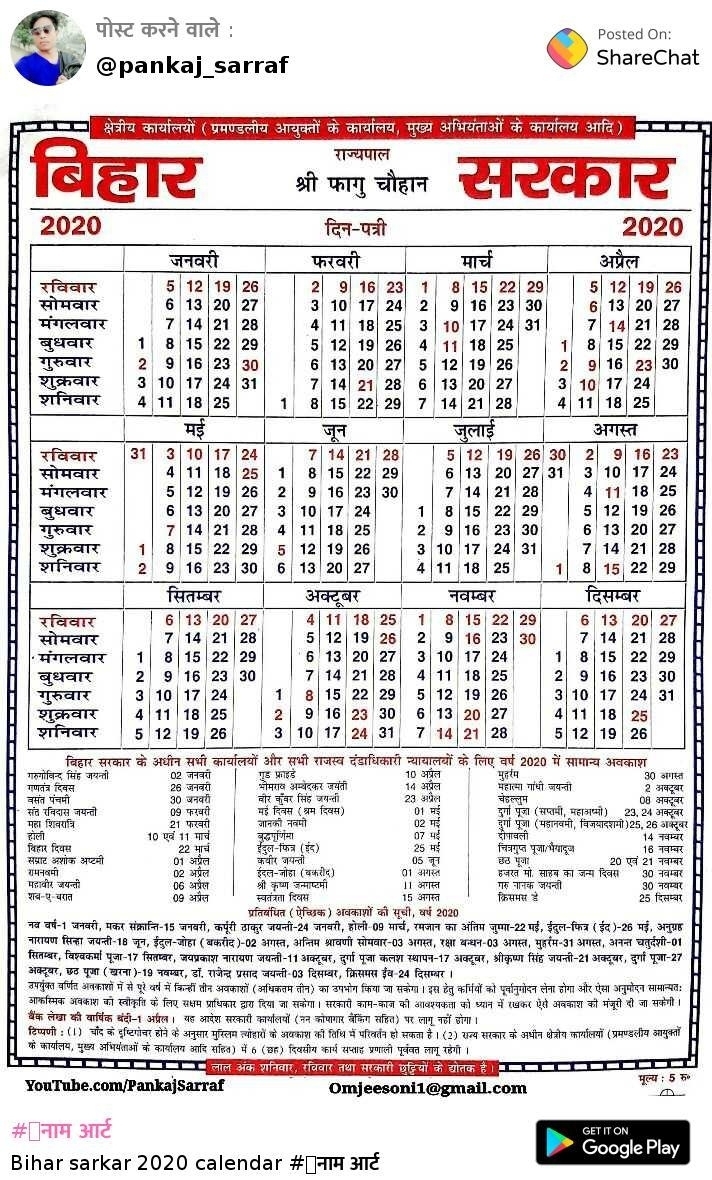 Download and Print Bihar Sarkar 2025 Ka Calendar With Tithi Listed below