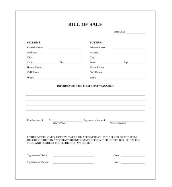 But what if you can’t find a pre-filled bill of sale form that suits your needs? Don’t worry – a blank printable bill of sale form can be just what you need. With a blank form, you can customize it to fit the specifics of your sale.
