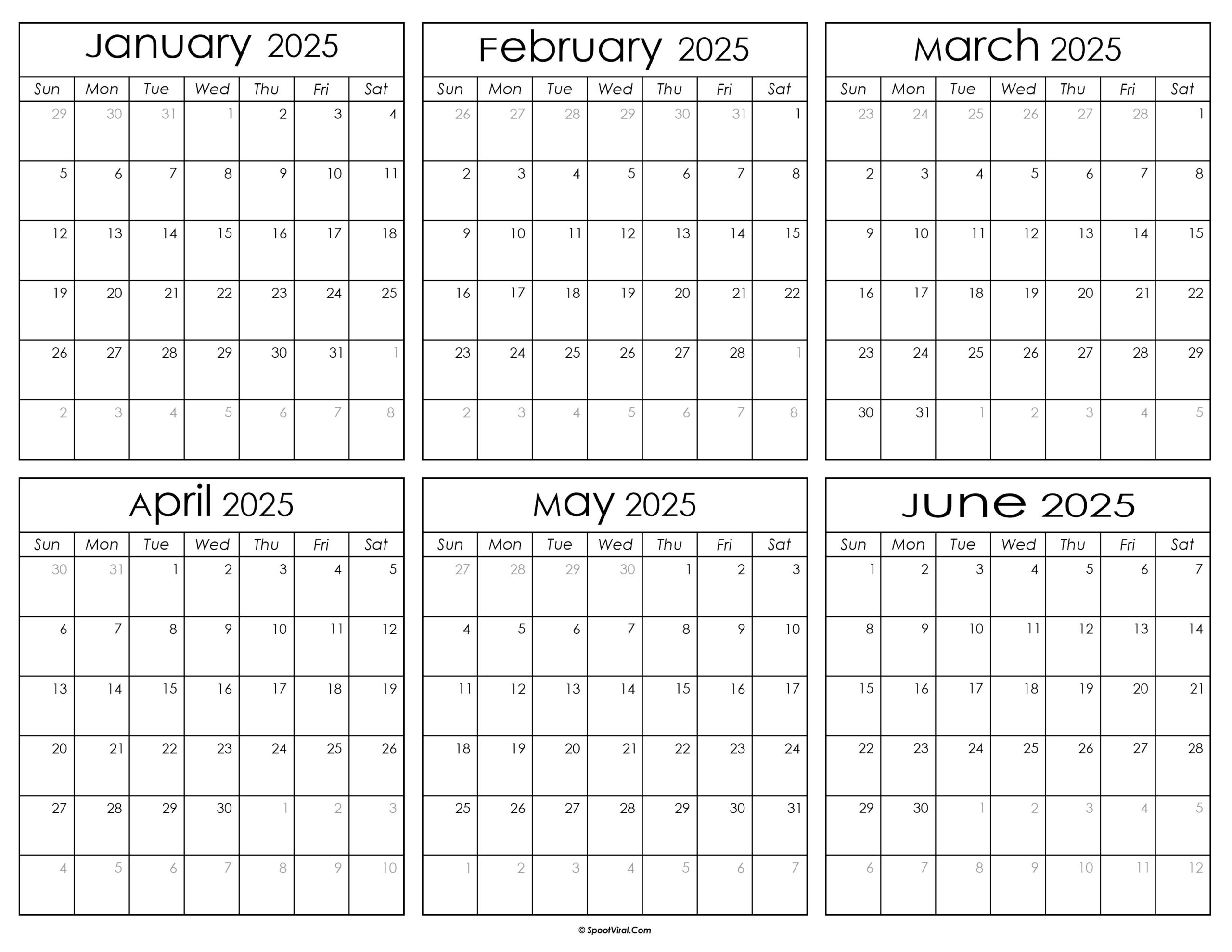 Don’t let important dates slip through the cracks – take control of your schedule with a printable calendar for January to June 2025. Whether you prefer to plan ahead or simply like to see your month at a glance, having a physical calendar can make all the difference in staying organized and on track.