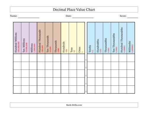 If you’re looking for a handy tool to help your child with understanding decimal place values, a blank decimal place value chart printable could be just what you need. These charts are a great visual aid for learning and practicing decimal place values.
