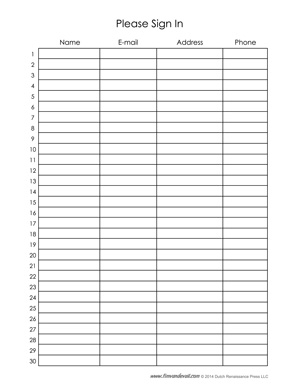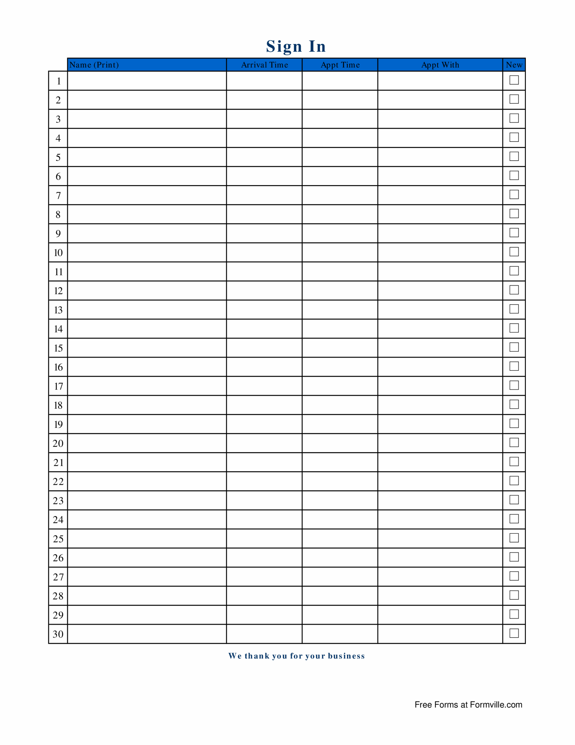 Download and Print Blank Free Printable Sign In Sheets Listed below