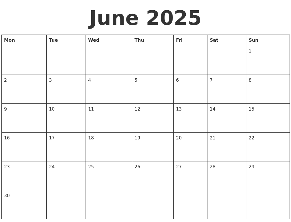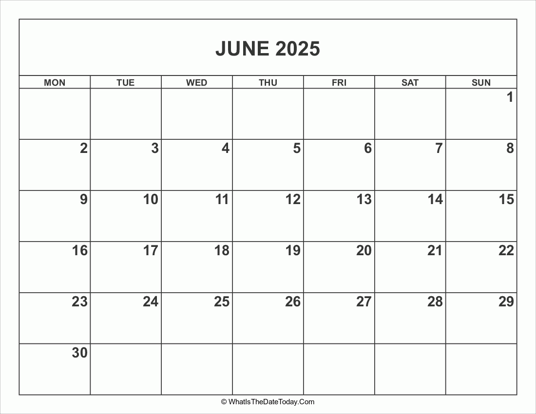 Download and Print Blank June 2025 Printable Calendar Schedule Listed below