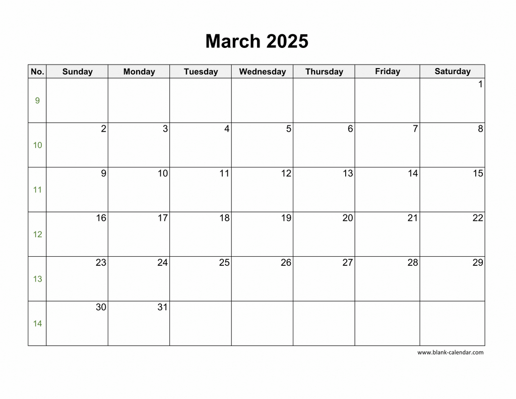 Get organized and stay on top of your schedule with our Blank Numbers March 2025 Calendar Printables. Download yours today and start planning for a more productive month ahead!