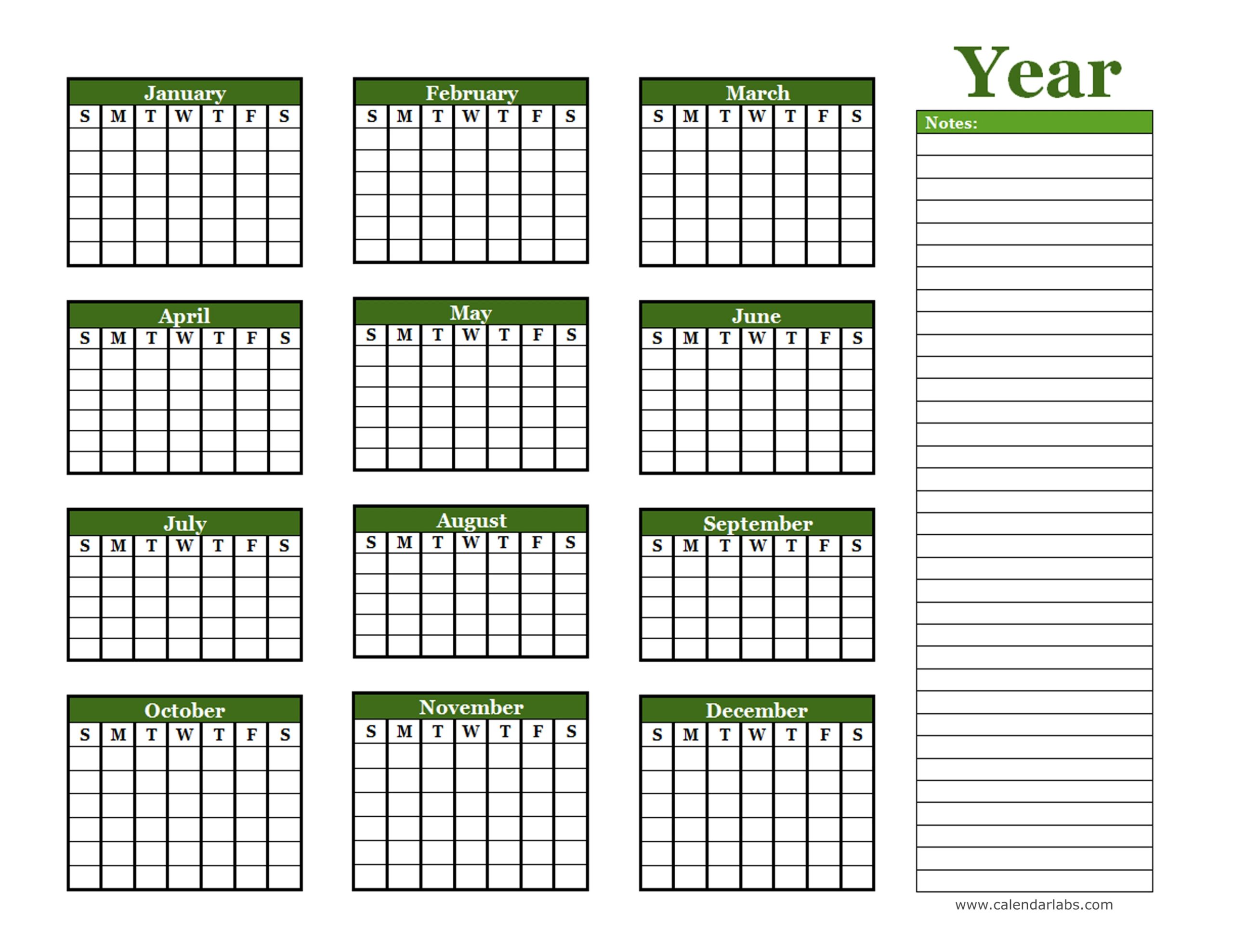 Download and Print Blank One Year Calendar Printable One Page Listed below