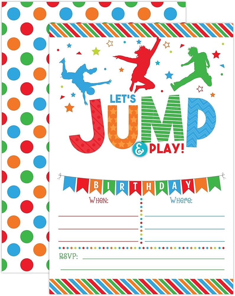 With our blank party invitations, you can add your own personal touch by including details such as the date, time, location, and any special instructions for your guests. You can also choose from a variety of fun designs and themes to match the vibe of your trampoline park party. It’s easy, convenient, and cost-effective!