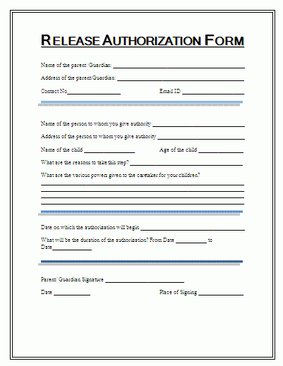 Download and Print Blank Printable Authorization To Release Form Listed below
