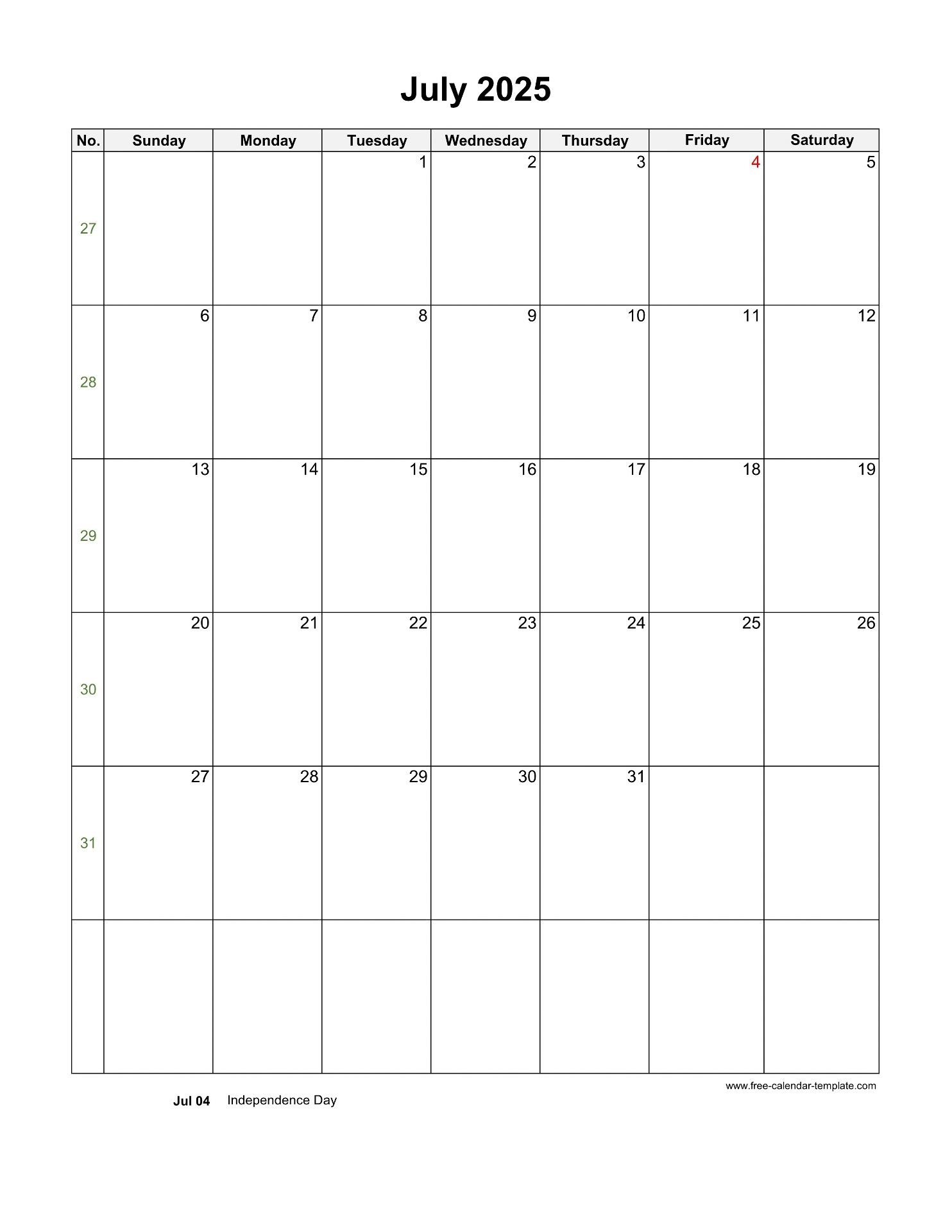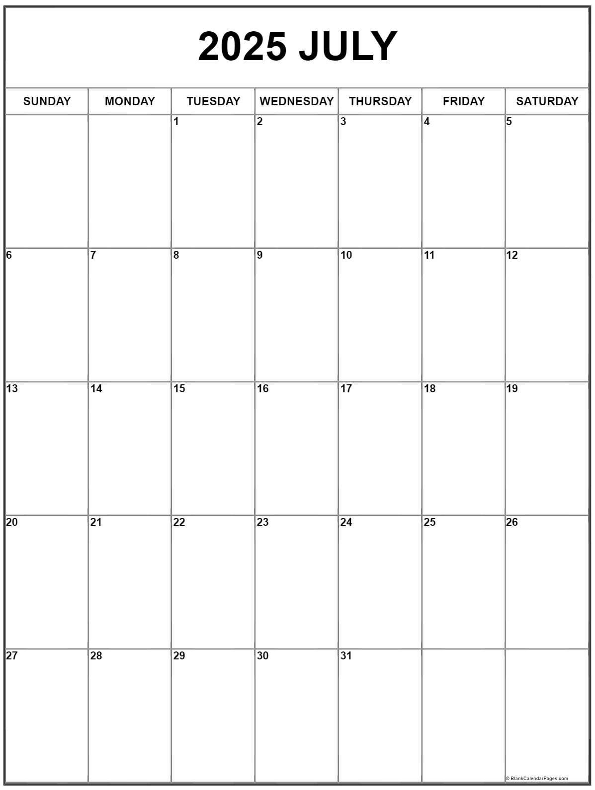 Download and Print Blank Printable Calenda Rvertical July 2025 Listed below