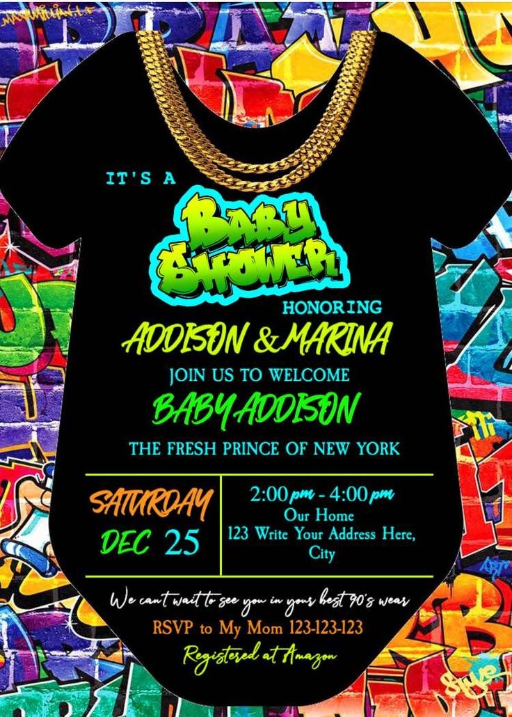 With iconic phrases and vibrant colors inspired by the hit ’90s TV show, these invitations are sure to make your guests smile. Whether you’re a fan of Will Smith or just love a good throwback theme, these invitations are a great choice for your upcoming baby shower.