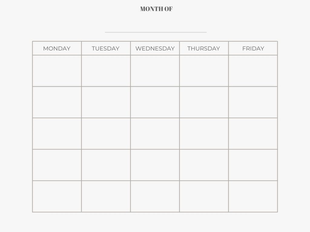 So, if you’re ready to streamline your month and keep track of your important dates, consider using a blank printable monthly calendar Monday through Friday. Stay organized, stay focused, and make the most of your time with this simple yet effective tool.