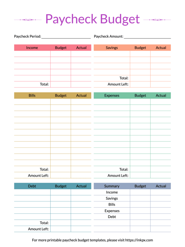 Download and Print Blank Printable Paycheck Budget Spreadsheet Templates Listed below