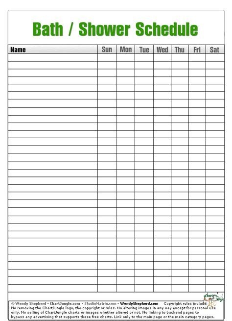 By using this printable shower time chart, you can not only save water and energy but also become more mindful of your daily habits. Plus, it’s a great way to stay organized and on track with your goals.