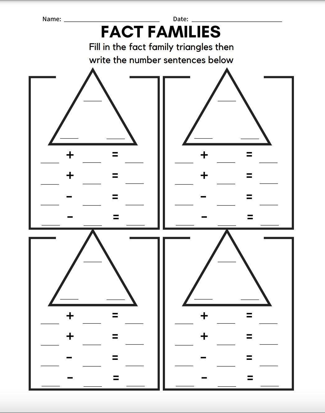Download and Print Blank Printable Triangles For Math Fact Families Listed below
