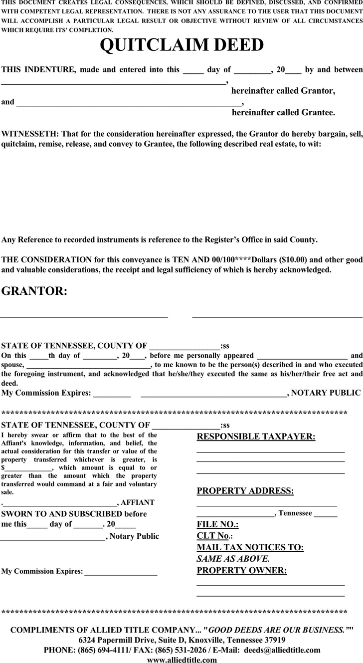 Looking for a blank quit claim deed Tennessee printable form? You’re in the right place! This legal document allows the transfer of property between parties without any warranties. It’s a simple and straightforward process that can be done quickly and efficiently.