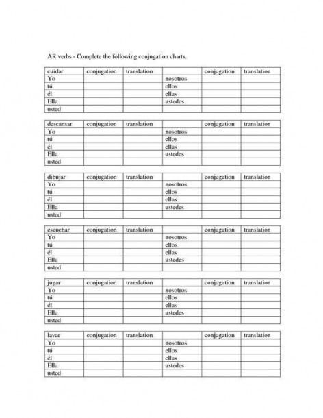 Download and Print Blank Spanish Verb Conjugation Chart Printable Listed below