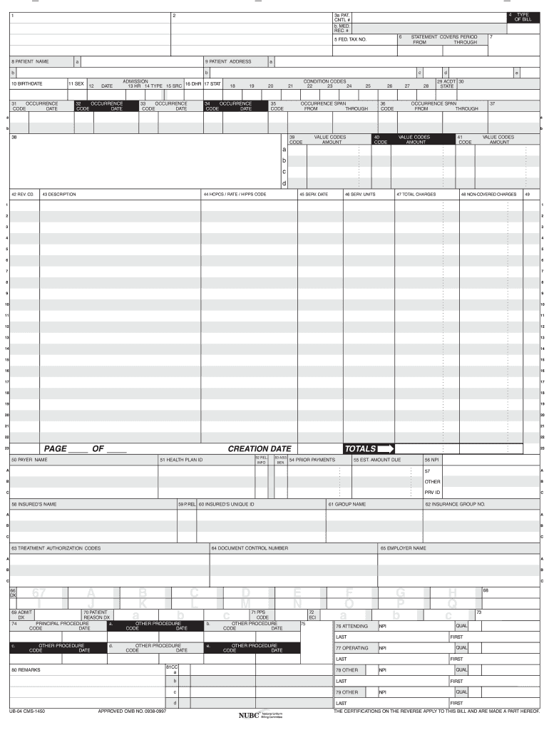 Download and Print Blank Ub 04 Claim Form Printable Listed below