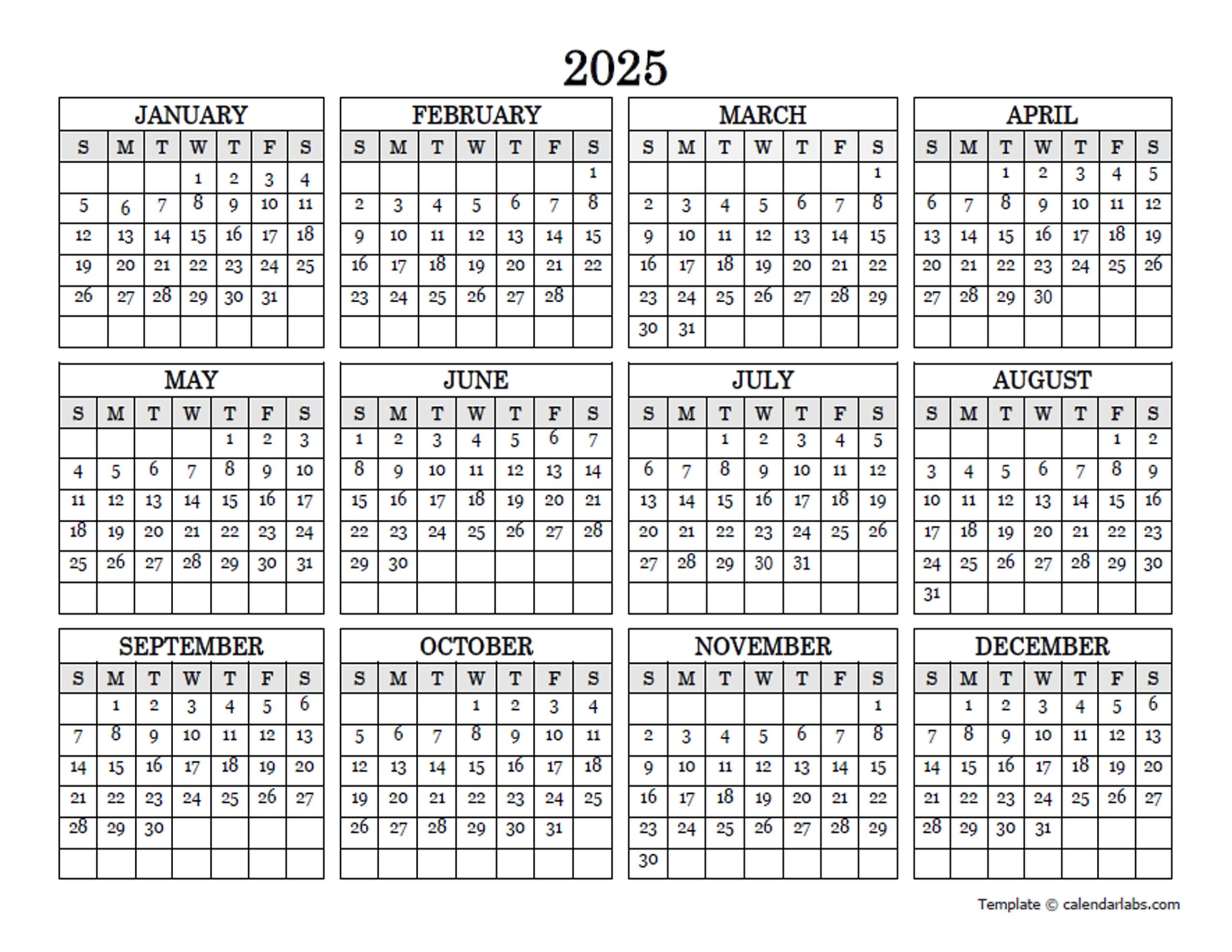 Download and Print Blank Yearly Calendar 2025 Printable Free Listed below