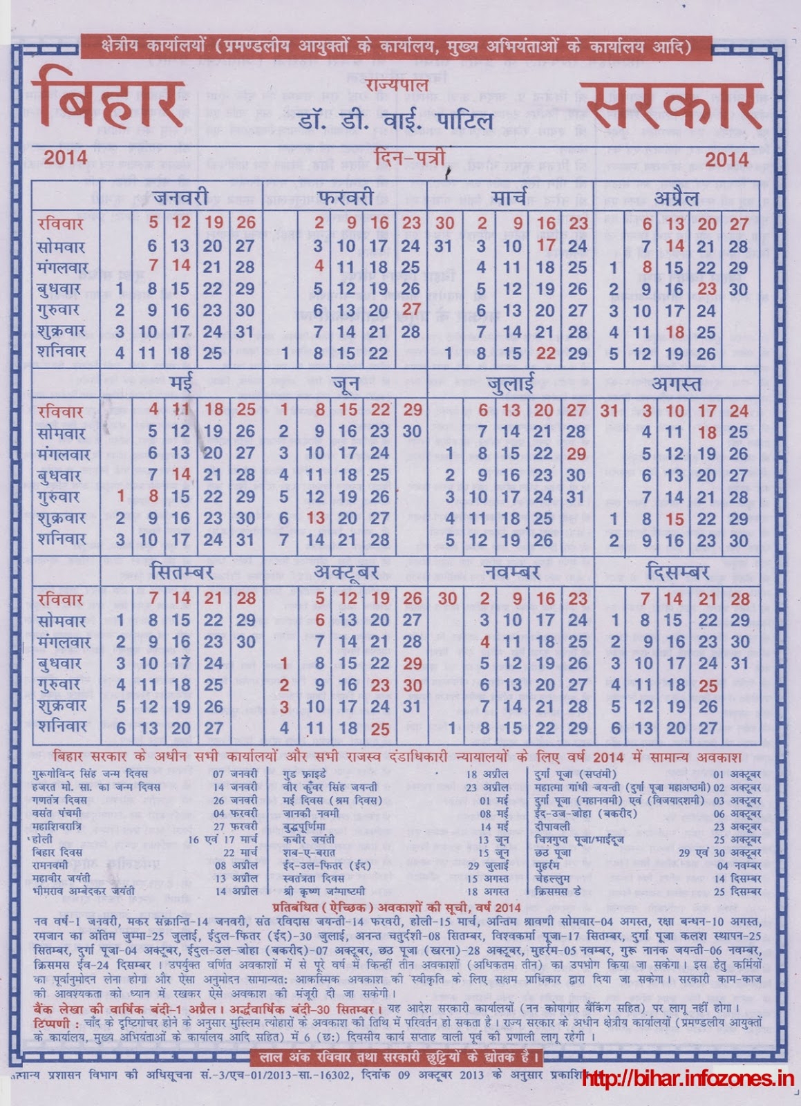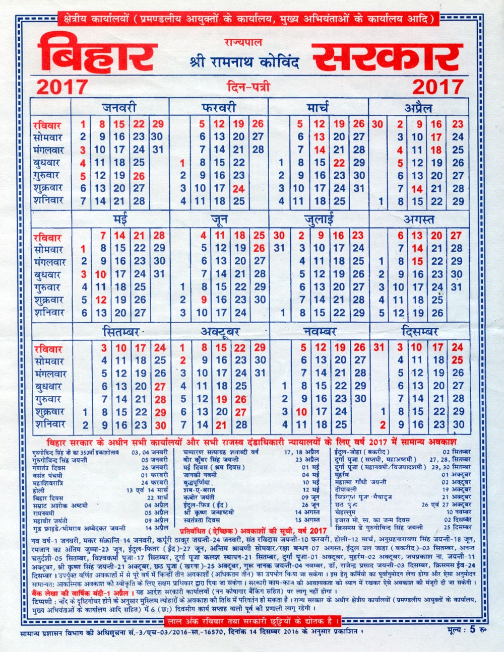 Download and Print Calendar Bihar Sarkar 2025 Listed below