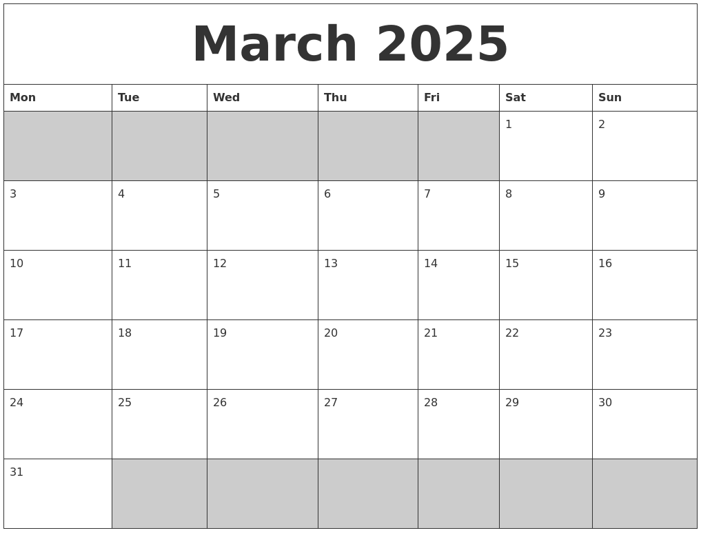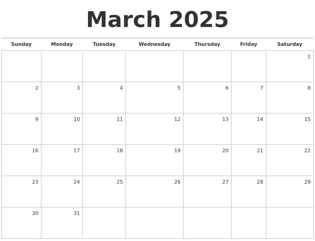 March 2025 is just around the corner, and what better way to stay organized than with a free printable blank calendar? Whether you need to keep track of important dates, appointments, or just want to plan your month ahead, a printable calendar is a handy tool to have on hand.