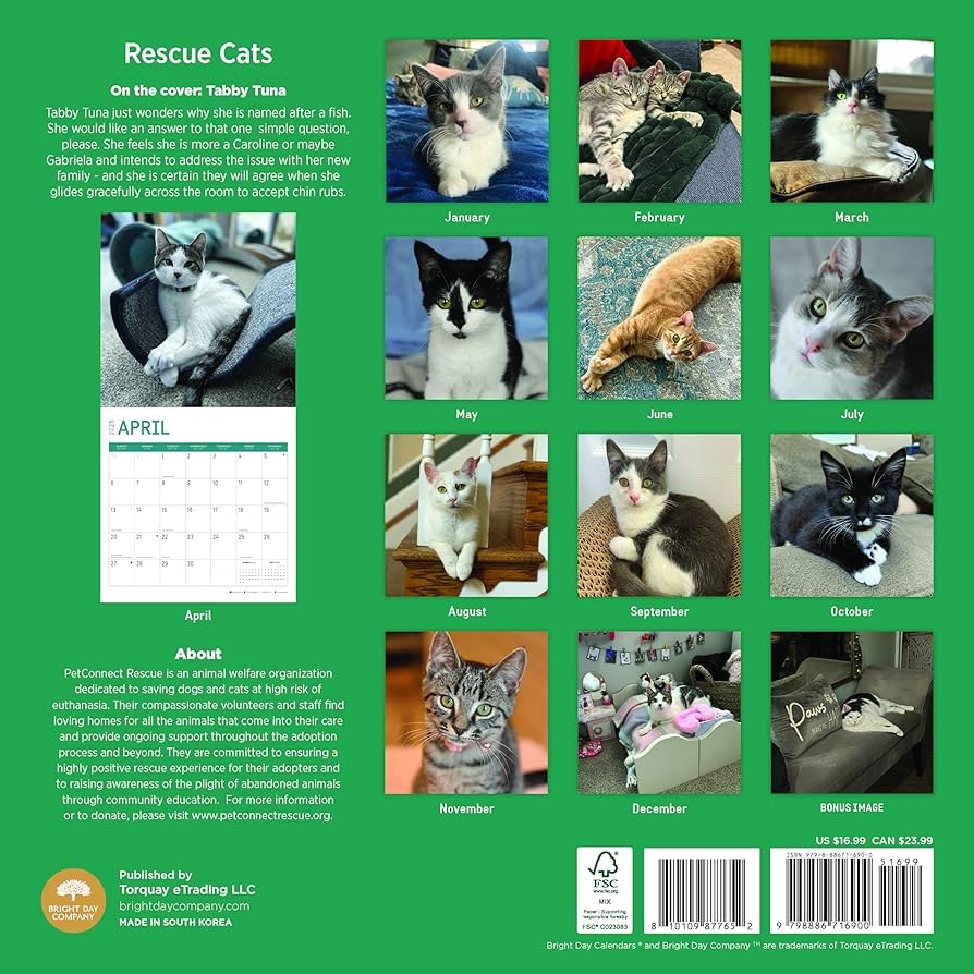 Every time you flip the page to a new month, you can feel good knowing that your purchase is helping cats in need. Whether it’s providing food, medical care, or a loving home, your contribution goes a long way in making a positive impact on these furry companions.