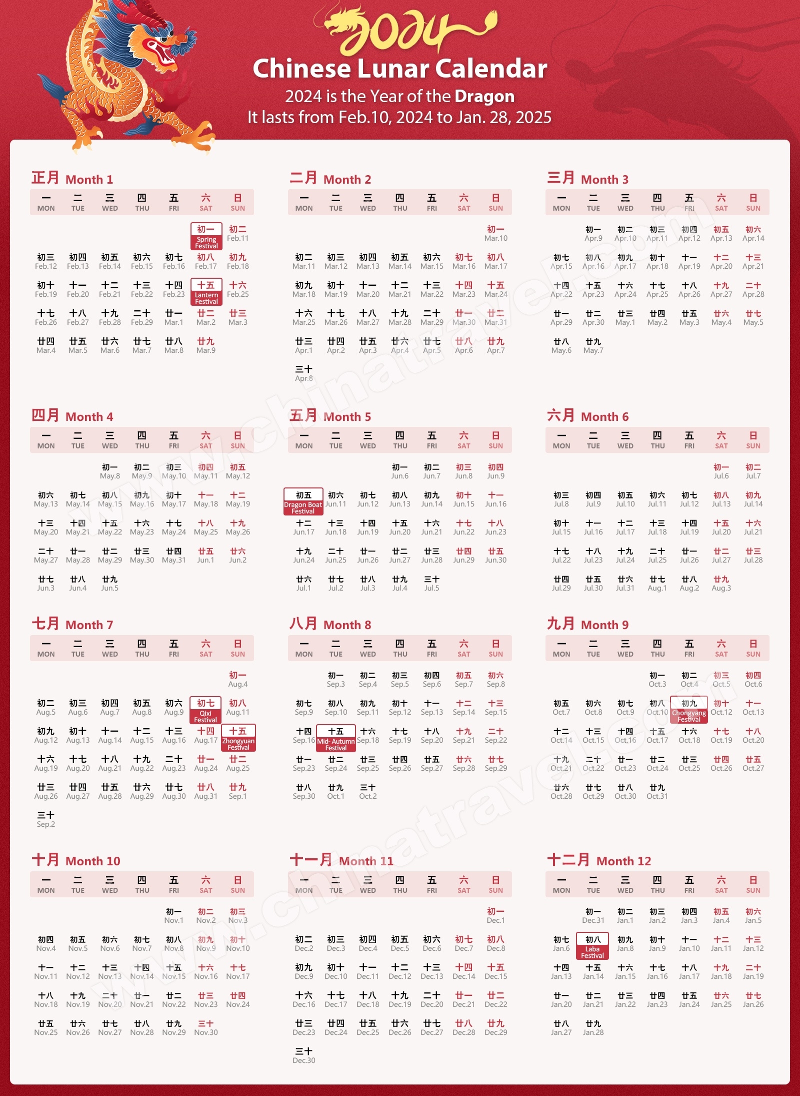 Download and Print Chinese Calendar 2025 Chinese New Year Listed below