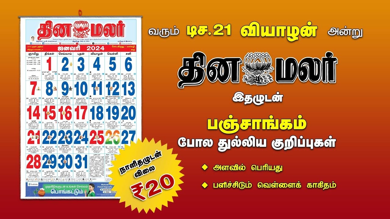 Download and Print Dinamalar Calendar 2025 Release Date Listed below