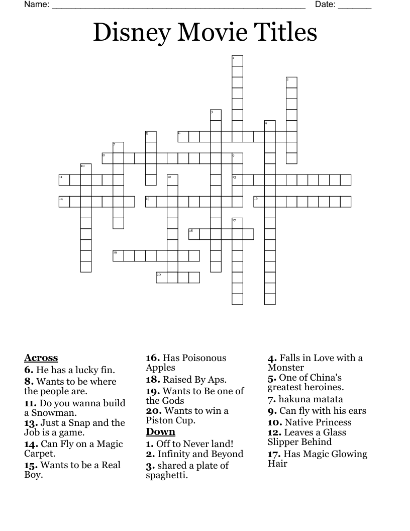 If you’re a fan of Disney movies and enjoy solving crossword puzzles, then you’re in for a treat! Disney Movies Crossword Puzzles Printable are a fun and entertaining way to test your knowledge of your favorite animated classics.
