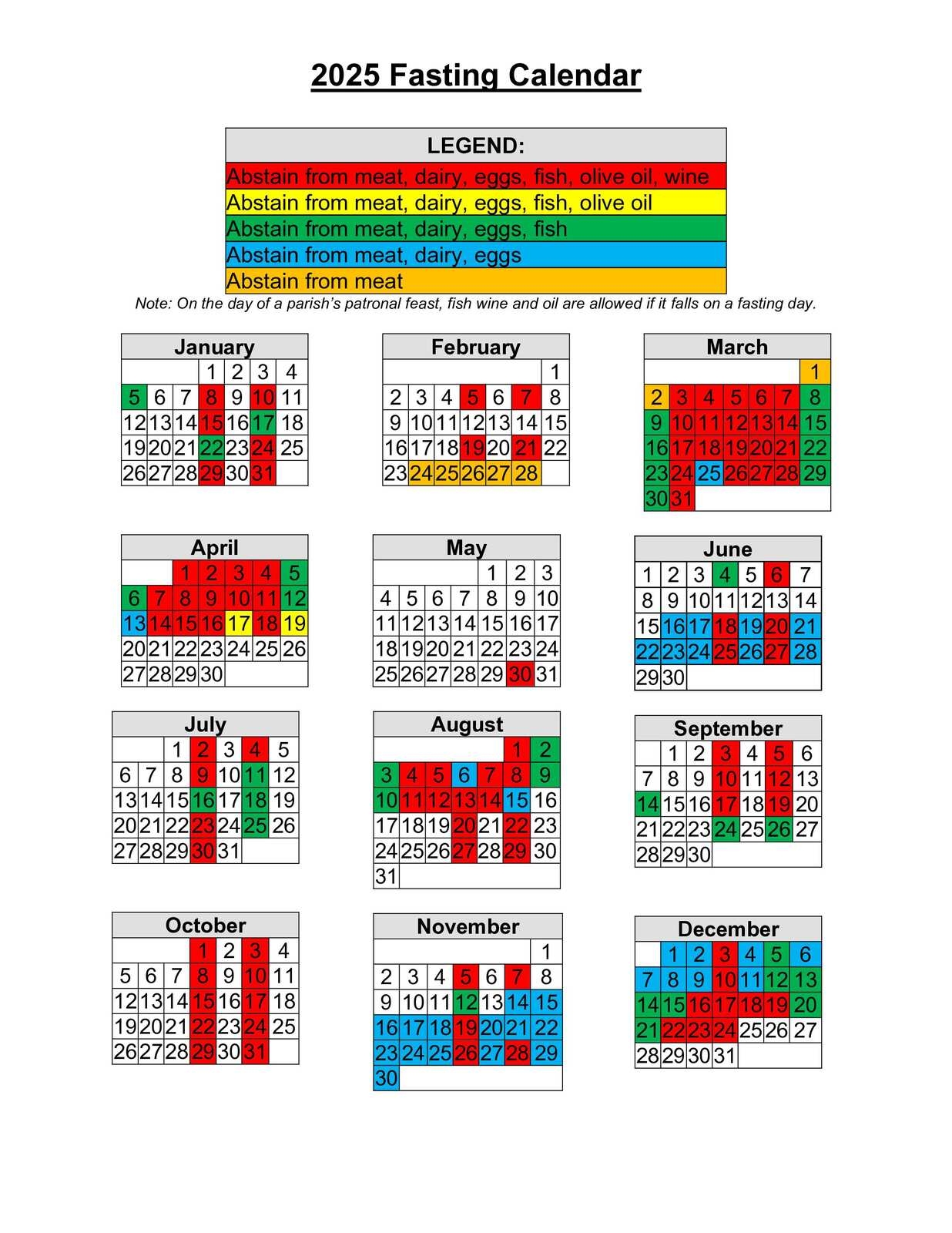 Download and Print Eastern Orthodox Fasting Calendar 2025 Listed below