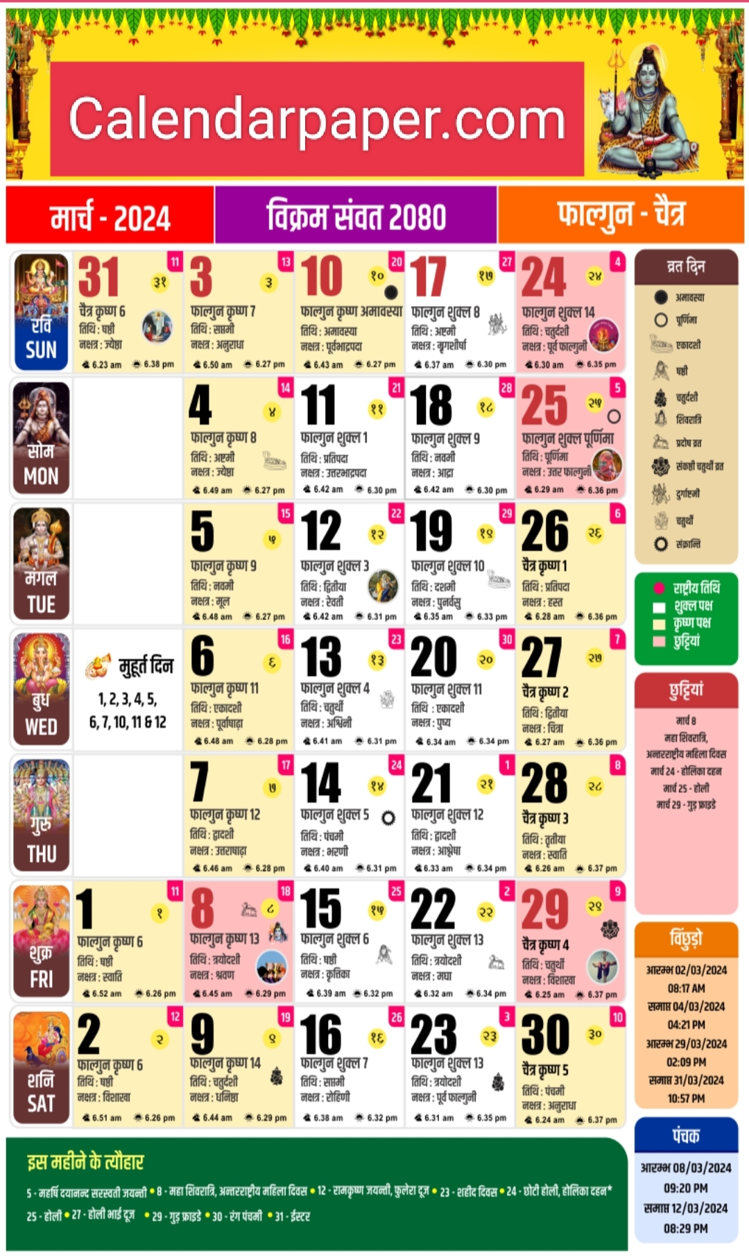 Each month is marked with important tithis and festivals, so you can plan your schedule accordingly. From New Year celebrations to religious holidays, this calendar has it all.