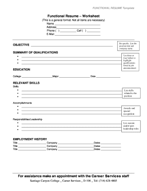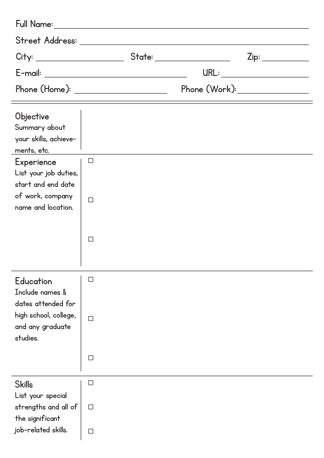 Fill In Blank Printable Resume Worksheet