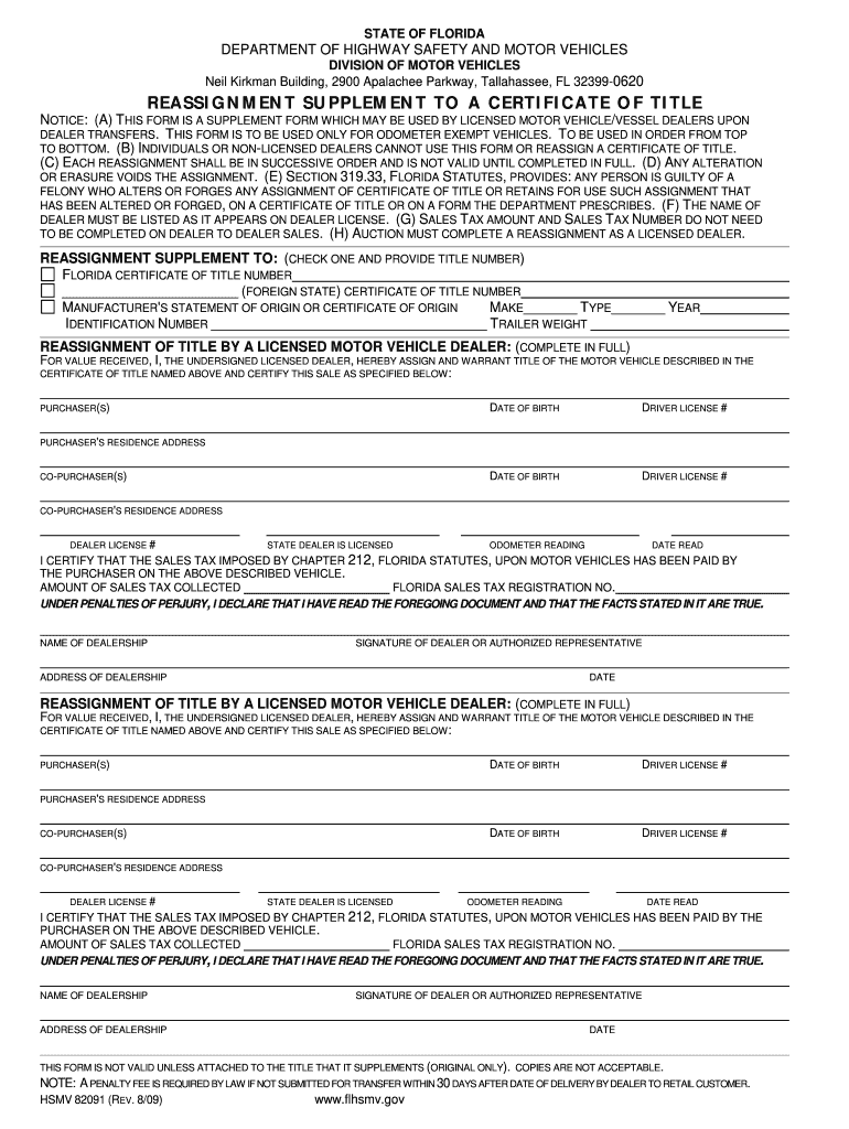 Download and Print Florida Blank Title Transfer Form Printable Listed below