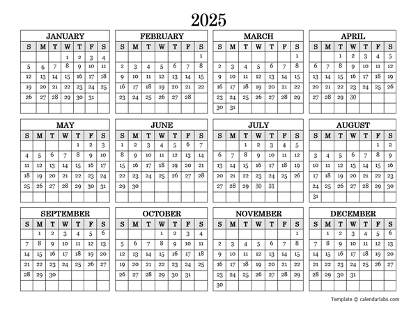 Download and Print Free Blank 2025 Yearly Calendar Printable Listed below