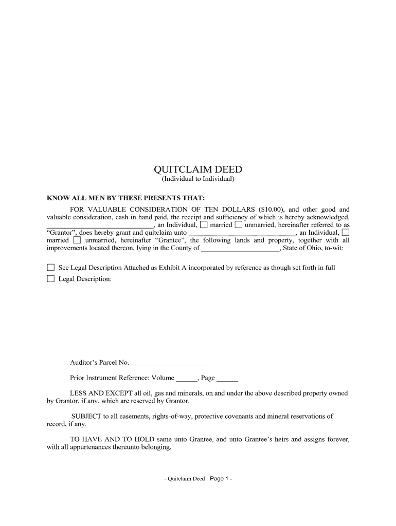 Download and Print Free Blank Printable Quit Claim Deed Ohio Listed below