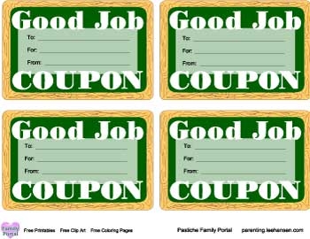 Download and Print Free Printable Blank Good Job Reward Coupons Listed below
